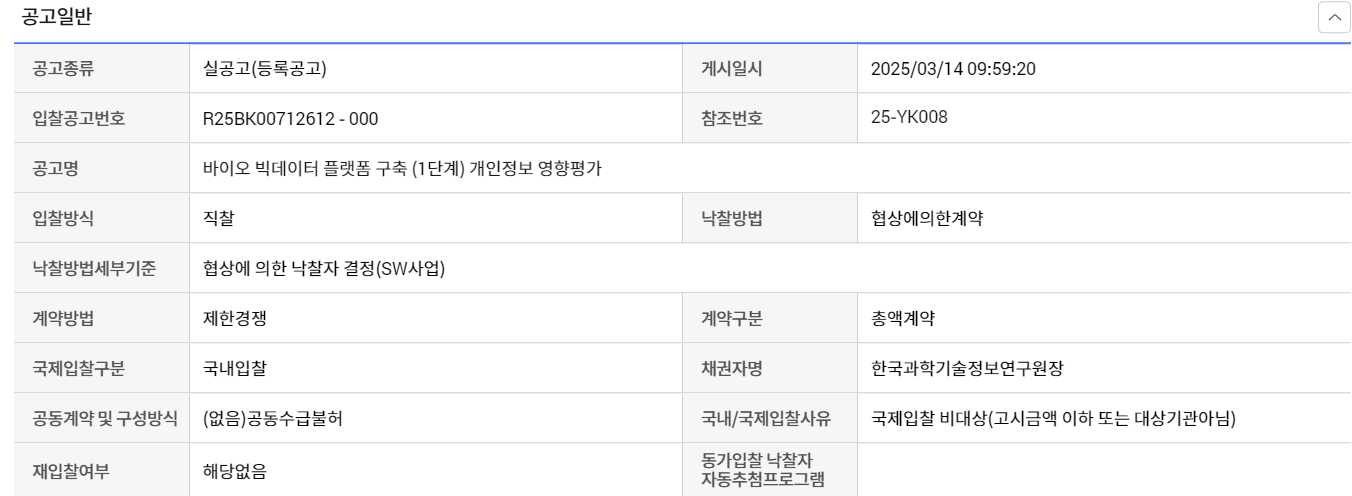 • 사업명: 바이오 빅데이터 플랫폼 구축(1단계) 개인정보 영향평가