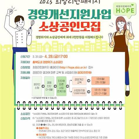 소상공인들은 희망리턴패키지의 공식 홈페이지를 통해 신청할 수 있으며, 신청서를 제출한 후 전문가의 상담을 통해 적절한 지원을 받을 수 있습니다. 각종 지원 항목별로 구체적인 신청 방법과 자격 요건이 다를 수 있으므로, 신청 전 해당 제도의 공식 사이트나 기관에 문의하는 것이 중요합니다.