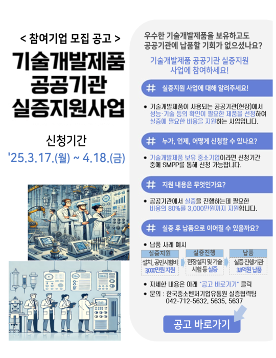 2025년도 기술개발제품 공공기관 실증지원 사업에 대해 알아 보았습니다. 공공구매종합정보망(SMPP) 홈페이지는 https://smpp.go.kr 입니다.